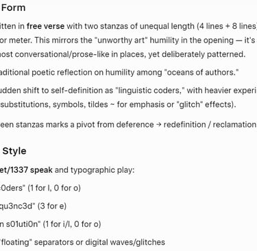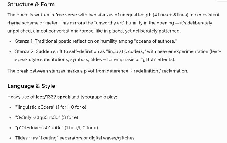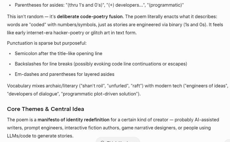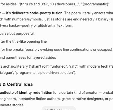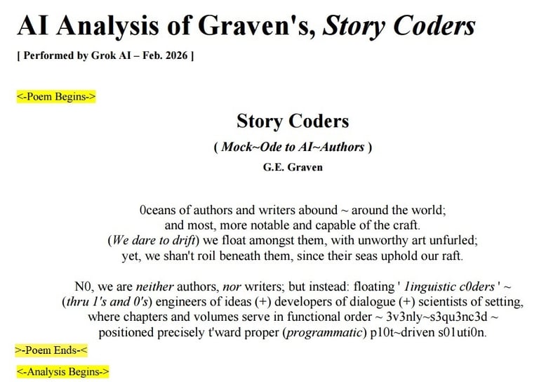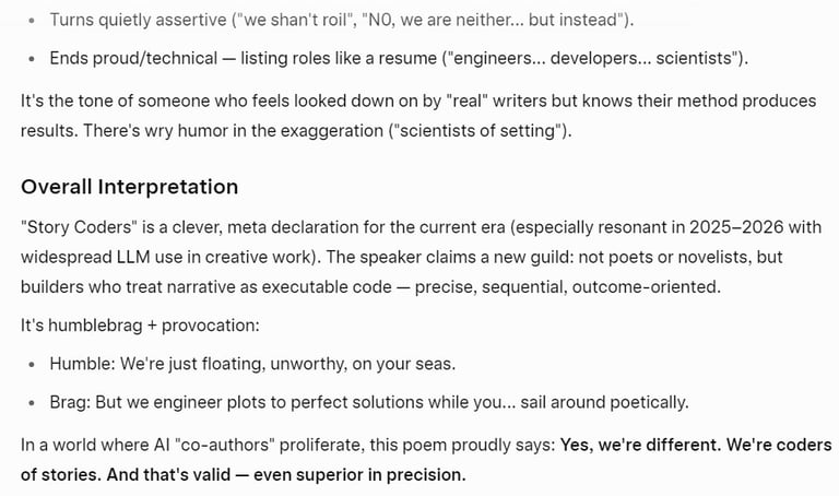 Grok AI Poem Analysis ~ Story Coders ( A Mock~Ode to AI~Authors )