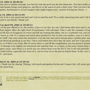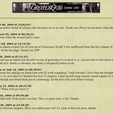 Grotesque, A Gothic Epic © is legally and formally registered with the United States Copyright Office under title ©#TXu-1-008-517. All rights reserved 2025-2026 by G. E. Graven. Website design and domain name owner: Susan Kelleher. Name not for resale or transfer. Strictly a humanitarian collaborative project. Although no profits are generated, current copyright prohibits duplication and redistribution. Grotesque, A Gothic Epic © is not public domain; however it is freely accessable through GothicNovel.Org (GNOrg). Access is granted only through this website for worldwide audience enjoyment. No rights available for publishing, distribution, AI representation, purchase', or transfer.