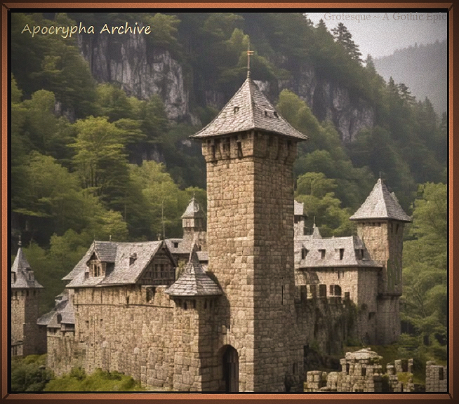 Less than an hour elapsed before the heavily guarded coach, bearing the seal of the Church of Rome, labored up a steep, rutted path, screened by tall stands of evergreens. The stone battlements that rose darkly beyond the trees had an equal shade of black as the sky behind them. The sky thickened as floating ash; the winds reversed and turned to ice. Flashes; thunder - in only moments, fat raindrops paved a way for torrential rains. Lean’s entourage struggled up the narrow mudslide of a road, with several dismounted and mud-caked guards pressing against the back of the carriage in combined effort to urge it forward. They heaved it out of puddles; onward, inch by inch, foot by foot. Lightning illuminated the road ahead whilst outlining the ever-looming silhouette of the Apocrypha.
