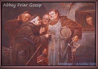 In his called assembly of the Senior Friars, Blasi instructed every priest to scribe a letter and deliver it to him by nightfall. In it, he expected three things. First, the priests were to list all abbey facilities and practices that might be improved. Although Blasi was quite indifferent with suggested improvements, the list served well to distract the monks from the following two lists, which were paramount to his ploy and the very reasons for the inquisition. The second of Blasi’s expectations was that the priests were to offer incriminating testimony on their fellow priests by listing all witnessed behavior that might have seemed ‘unbecoming’ of a monk. Third and lastly, Blasi expected them to write down personal confessions of wrongdoing. He informed the friars that all written confessions would remain confidential.