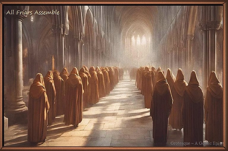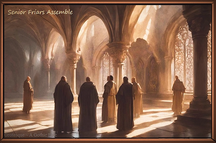 The following morning, immediately after services, Abbot Vonig calmed his concerned monks, informing them of his reassignment to Avignon. At midday, he boarded the carriage and mounted soldiers escorted him away. Blasi moved with deliberate haste. As the new abbot, he called for a meeting of only the Senior Friars of the abbey ~ only those who knew of the existence of the gatestone and the true purpose of the abbey, as its guardian. His reason for calling the meeting was simple: to dissect the body of Lower Council Friars in much the same as was the standard practice of any church inquisition. And as a College Cardinal, Blasi was quite learned of the art of witch-hunting. As he knew, the method of any inquisition was straightforward: to hold an assembly, introduce absolute authority, demand confessions of wrongdoing, and then divide the masses through testimony against one another.