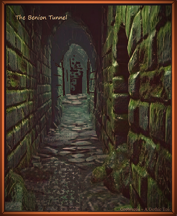 Thus, Lazarus left the cell and strode away. Yet, in route to his room, no sooner had he quitted the corridor, a crackling noise emanated from a tunnel juxtaposed to the main causeway and positioned directly across from the passage that he departed. The sound, like splintering wood, echoed from deep within the Benion Tunnel ~ the more ancient of the many subterranean arteries.