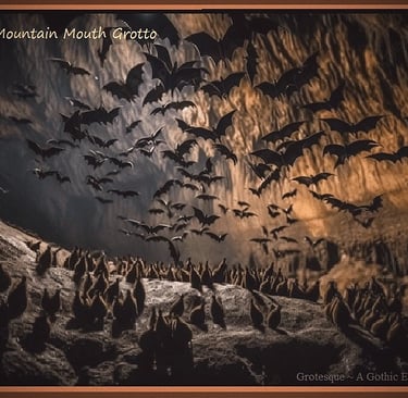 Outside the cave, and of all the mountains in France, the dawning moon seemed to smile down on only one ~ an outwardly strange mountain with a mouth agape and laughing hysterically whilst belching a cloud of bats that swarmed its rock face. But soon, the bats were gone and its once echoing laughter blended into wails of sorrow ~ horrible cries of pain and loneliness ~ and perhaps sounds choking enough even to make the moon look down and weep for the yowling Mountain Mouth.