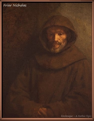 Lazarus peered through the fire, inspecting Nicholas' finely crafted, calf~high boots. "Where are your sandals, Friar?"