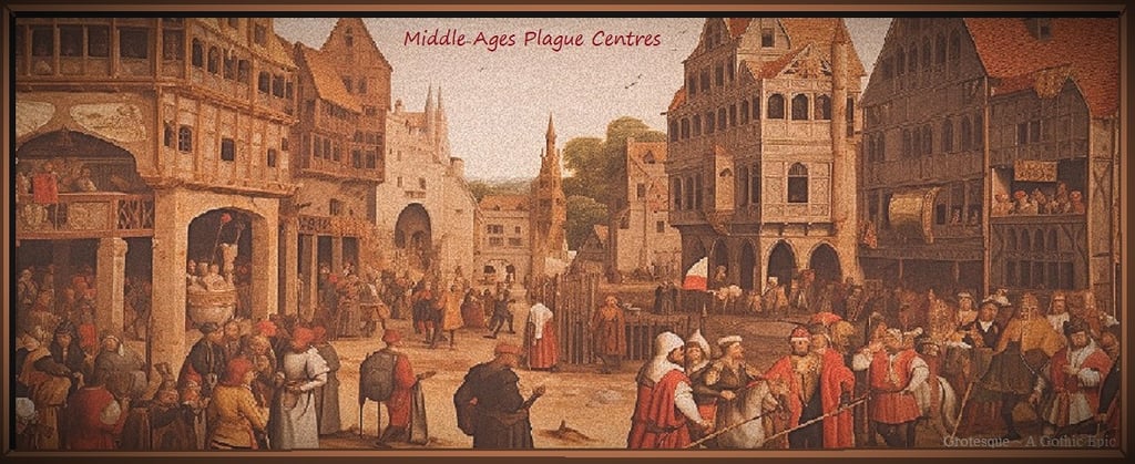 The Plague moved inland from Italian port towns, thoroughly devastating the major cities of Pisa, Rome, and Naples. Many of the local residents believed that dire biblical prophecy was to blame ~ that God was angry with them. And the more learned of them speculated that a fierce earthquake was the culprit of the current pandemic, as the earthquake had occurred only a year prior and was an unforgettable upheaval that spanned the length of the Italian peninsula from Venice to Naples. In its wake, they believed, poisonous vapors had escaped the earth and drifted over the lands, only to become absorbed into the skin. As a result, many townspeople avoided laborious tasks that caused sweating or any opening of the pores and skin, whilst others covered themselves with urine in an attempt to seal out the supposed lethal vapors. Most of those who did not flee the cities and towns remained in their homes, avoiding contact with the hundreds of corpses that filled the streets. And for those who dared to venture out of doors, they did so with their heads completely wrapped, leaving only a thin slit of cloth about their eyes. They held their faces in bouquets of flowers and spices to filter the fumes of rotting flesh and in a futile attempt to ward off the omnipresent contagion that now hung over the entire region.