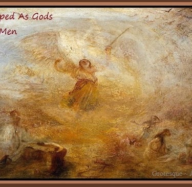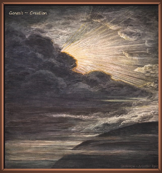 In the beginning, God created the formless void and called it Chaos. From Chaos, He called forth the angels, which were the Sons and Daughters of God. He saw them, as they were in His Glory; and He named their likeness, Eros. With His foremost and favored angel of light, Apollo, He divided darkness from night and day, imparting unto them the names Erebus, Nyx, and Hemera. And in Apollo's heavenly glow that He made day, He moved the angel Hermes to summon the helmet of the angel, Gaea, and formed the earth. From the womb of the earth, He summoned the shield of the angel, Ouranos, and covered the earth with the Elixir of Life. And when He had seeded the earth, within and without, with waters of Ouranos, He summoned the sword of the angel Aether and cast a firmament in the midst of the waters, separating skies from seas; charging the angels Oceanus and Tethys as Watchers of the Waters. And it was so.