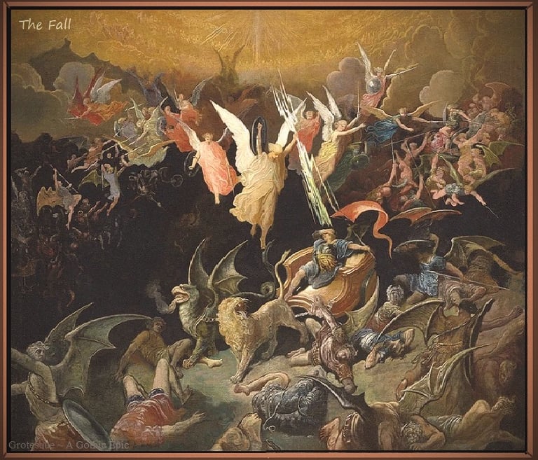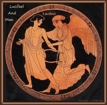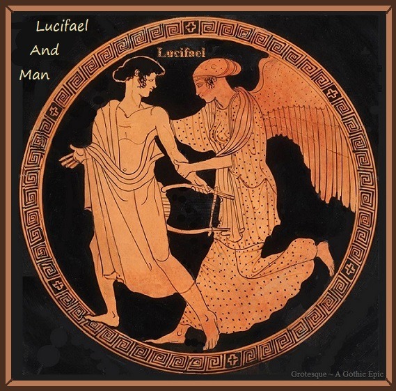 However, one fallen Watcher in particular, embittered by her lost beauty and former freedoms of debauchery and decadence, endured an age of deepest darkness and absolute seclusion; hiding her ugliness in the furthest reaches of Tartarus and burying herself in the most desolate regions where the gnarled earth grew as groves of only black and twisted shapes, where its waters boiled as puddles of muck and breathing mud. Over the eons of her self~prescribed exile, even the keenest angels of Hades had forgotten the once notorious names of Heylel and Morningstar. In Lucifael’s self~prescribed isolation of decay, she paled and her heart turned evermore indignant over Man’s betrayal. And beneath such heaving mires of resentment, her incessant sullenness swelled into an unquenchable obsession to corrupt Man’s very essence, that he might abandon God and Heaven and eventually share the same cursed fate as was hers. In the blackness of her eternal confines, she decayed into the Devil herself, and this fallen angel of light became a ravenous wolf feeding upon Man’s soul.