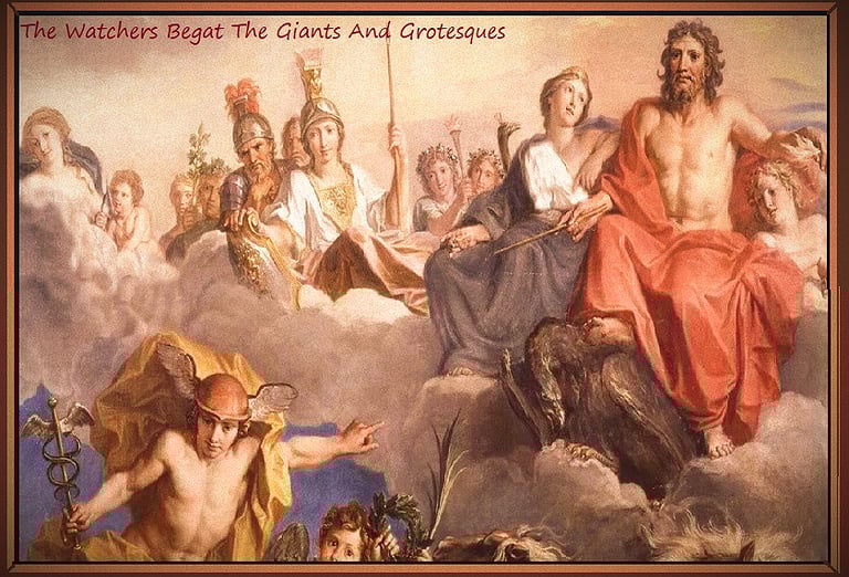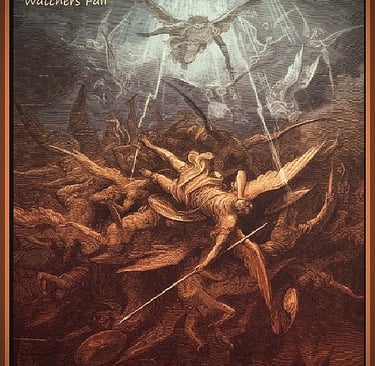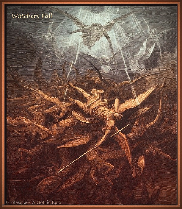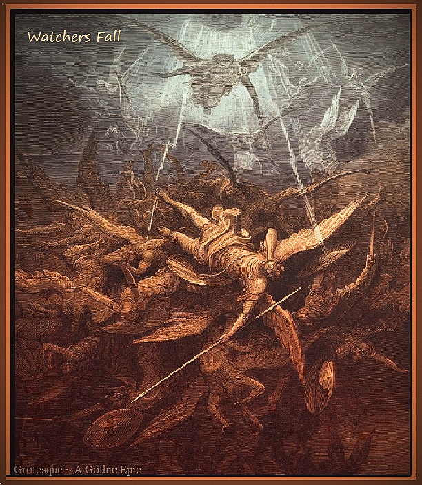 Michael enlightened Raphael as to the greater part of the Watchers, the sons and daughters of God, who had taken for themselves the sons and daughters of Man as wives and husbands, who had birthed a multitude of mighty children to inherit the earth. Michael told of the pact that the Watchers had made on the mount of Haremel before disappearing into the valleys of Dudael and Urh, and he spoke especially of their numbers, for they were many. Michael revealed to Raphael the names of their numbers, who called themselves the Chiefs of Tens. They were the unholy legions of the angels of Semjaza, Ezequeel, Samael of the Sword, Lucifael of Light, Cerberus and Hydra of the Gates, Azazel of Fate, Prometheus of Fire, Hermes of the Word, Kisdeja, Machet, Atlas, Araqiel, and the thousand, thousands that served beneath them ~ the Nephilim, Nephelai, Cyclopes, the Eljo and Eliud, Gorgons, the Oceanids and Sirens, and the countless others of unnatural being.