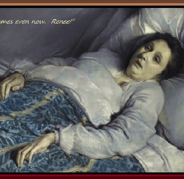 The cardinal’s demeanor changed completely as he chuckled and sat upright on the floor. He pressed his wild hair back into place and searched the walls of the room, his eyes glazed and rolling like those of a drunkard. He nodded, smiling. “I see.” He stood up and slapped the dirt from his pant legs. “Indeed, I do,” he replied, throwing his hands on his hips, continuing to address the walls, “You took them from me because you wanted to torture me with a most personal loss ~ and shield me from the effects of this worldly pestilence, when all others succumb to it, because you wish to keep me alive so that I might give you a long life of grief, upon which you would forever feed. However, if I die, then you no longer have satisfaction of my grief. No, No! NO, I refuse to grieve for the likes of you! Alive or dead ~ either way, I have undone you.” Blasi laughed and dismissed the wall with a petulant wave of his hand. “Now, be gone from me, Oh Death and Grim Despair! I have a real guest in the wings, if only for a spell.” He adjusted his clothes, checked himself like any prim and proper dignitary expecting an audience, and stepped out of the chateau with a subtle grin, high brow, and a raised chin.