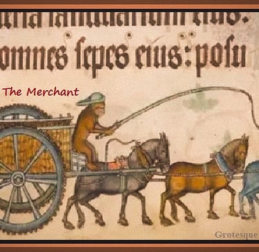 “Yes. I wish to ~ if the master is willing ~” The man grimaced and scratched his scruffy beard, considering how best to present his good intention. “Please inform him that a merchant has arrived with a trader’s cart filled enough with wares to supply his entire manor for several seasons.” He peered over his shoulder and scanned his goods before reciting his inventory as any effectual merchant, honed finely by many years of crafty dealings; “I have fresh grains, dried fruits, salt~meats and sweetmeats. I have lamp oil, scented powders, balms, cloth, leather, and medicines. I have a plentiful supply of salt and all manners of curing and healing spices. I have cooking irons, porcelain pieces, and serving dishes of silver and gold, fit for any noble abode. As well, I have an untapped cask of the finest wine in all of France.” He turned about, looked squarely into Blasi’s eyes, nodded, and passed a presenting hand over his horse and wagon, solemnly saying, “And this fine mount and sturdy cart are also a part of my barter, if the master is willing. Please inform him ~ all of this, I shall give him, if he grants me but a simple request.”