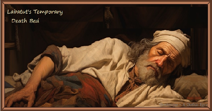 “You do not truly gather yourself to be dead, do you?” The merchant questioned him, chuckling. He looked up to discover a rather stern stare ~ an expression quite sincere. His grin melted and in that moment, perhaps Labatut might have seen a seed of madness, since sown in the priest now standing over him. The merchant tore away his gaze and watched the black window. Then he mumbled with raised brow, “Well, I certainly hope to be as dead as you in the end; I do admit.” He toasted in the priest’s direction and washed down another cup. Then he dipped his goblet back in the wine bowl. He groaned. “My condition worsens.” He wiped sweat and snuggled deeply into the pillows, nursing his goblet with two hands and a smile, maybe, as would an eager child anticipating some bedtime story. “So, tell me of this army that you secured and what I would not believe of it. Oh, and of your leg wounds, if you might be so kind.”
