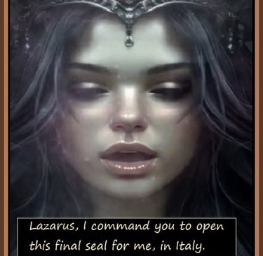 “Oh, indeed! You shall be going to Italy, since the third seal stands within a cathedral of the very monastery where you promised to fetch this holy man, however, rather than fetching him, I command you to open this last seal for me. And as your faith calls for it, you shall honor your mother by obeying my commands.”