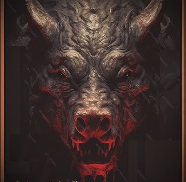 Lucifael allowed the boar space as it morphed, gradually swelling into an upright mammoth beast ~ tusks elongating, hooves transforming into six~fingered claws, and massive bony wings spreading wide out from its back.