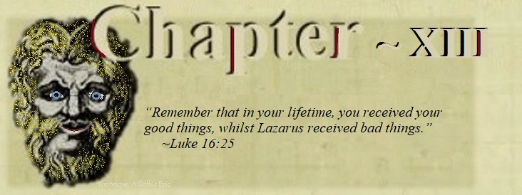 Yet, hours before, even in daylight, when Lazarus lay asleep on the cave floor, word of the Devil’s capture blazed across the land as quickly as a blinding crusade, the tale of it growing evermore fantastic with its every retelling. The last of many rumors was that Satan was discovered in a cave, sucking the hearts out of slain priests, and a hundred men fell before capturing him ~ before stopping him from releasing a great pestilence over the earth.