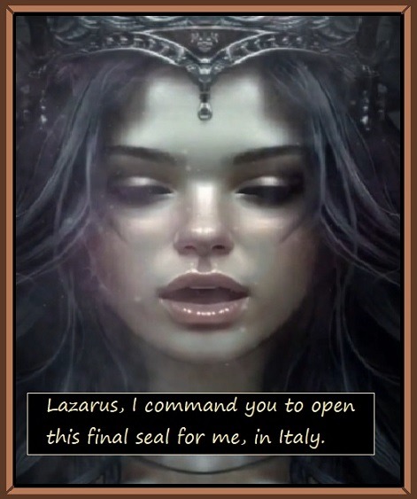 “This is what you intended by asking me to roll away a stone and open a cave ~ the stone is another gatestone and the cave is Hell.” Lazarus backed into a rocky recess. “And this is why you can not do it yourself.” He shook his head quickly. “I’ve given my life to God. And I’ve also given my word that I shall journey to Italy and fetch Friar Salv~”