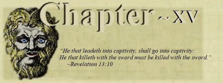 He caught his breath, stormed forward, and beat his fist against the door, yelling, “Who is the true monster, if not the man who slays his brother? And for what reason? To guard the same door, as did his brother, before him ~ and to hold me here, when I have never killed? No, you are the monsters! You are the devils! You are the pestilence of ALL that is Right and Good! YOU!”