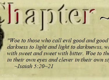 Lazarus set his jaw and drew a deep breath before countering him with Scripture and scrutiny; “Wisdom is of God. You seem to murder in order to covet women’s clothes. And ~ what you did with her eye?” He shook his head. “No, your heart is not of God.” The fisherman scowled. "God? Who’s god ~ yours?”