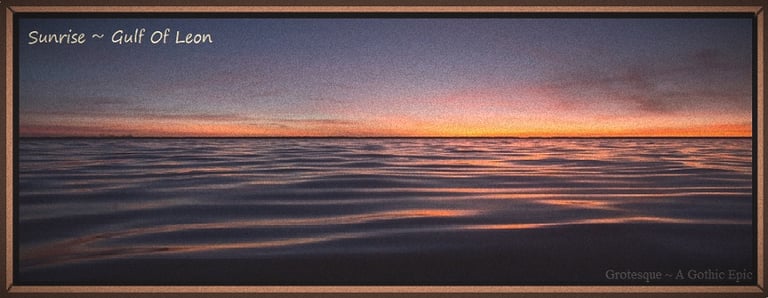Lazarus trailed the greenish, glowing ghost of Lord Medicci as they flew southward down a conifer~covered coastline and toward the port village of Saint Maxime. To his right, he saw the dim and irregular edge of the seashore, with its many inlets and peninsulas; and in his speedy flight, the shoreline might have appeared as but a bouncing blur, leaping back and forth, over and again. And even with him in motion, to his left, the sprawling ocean and its crimson horizon struck his eye as an outwardly frozen seascape. Still, Lazarus sensed a subtle, nearly imperceptible graduation in that thin red line of dawn. Its swelling radiance and rising heat all but forewarned of a fervent and fiery dragon, in hasty ascent, and bent on scorching the face of the earth with its deadly light of day.