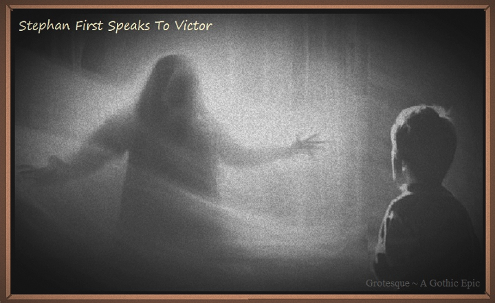 The ghost turned and approached Lazarus. "In any case, Stephan had many of his mother's features, save her distant, Norlander accent. His hair was of the lightest shade that I had ever seen ~ almost white, it was. And his skin was so much more pale than, even Sophia's fair complexion, that the deep shine of his blue eyes seemed to cast an eerie beam, as would azure crystals, sited before a flame. 'Twas much like the same uncanny stare as is yours, Lazarus. Nevertheless, there was much more to him than surface appearance."
